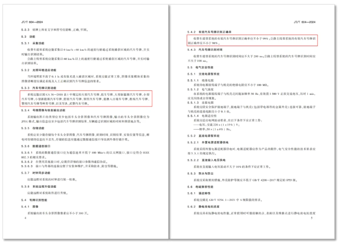 针对汽车号牌视频自动识别系统的应用现状和发展趋势,《汽车号牌视频自动识别系统》行业标准对汽车号牌识别功能(新能源汽车号牌、双层号牌、港澳车牌等)、号牌识别正确率(收费车道型系统的有效汽车号牌识别正确率应不小于99%;公路主线型系统的有效汽车号牌识别正确率应不小于98%)等重要功能和性能做了变更,助力公路收费管理更精确!