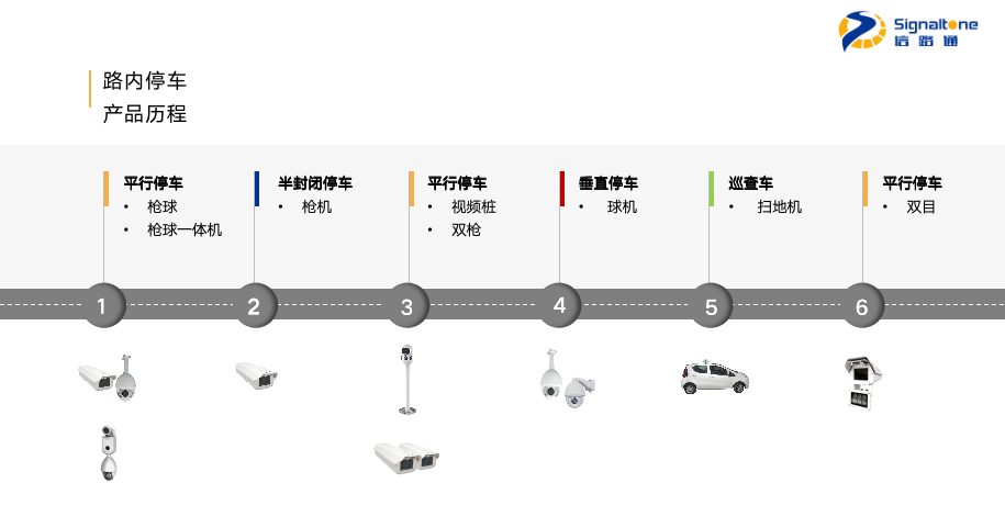 2013年推出CMOS相机做车牌识别;2015年视频车型识别设备“信•小黄人”面世,填补了物流园、农批市场等复杂车型停车计费的市场空白;2016年是覆盖8车位的高位视频设备“双枪”,2017年是巡查车车载视频设备“扫地机”,从2016年起,我们连续在路内停车视频解决方案上发力;2018年高清屏智能停车收费设备“小黄蜂”推出,这是一款智慧停车场规模级产品,突破性的将性价比做到了极致;2019年,我们又带来了覆盖6-8车位的中高位视频设备“双目”。