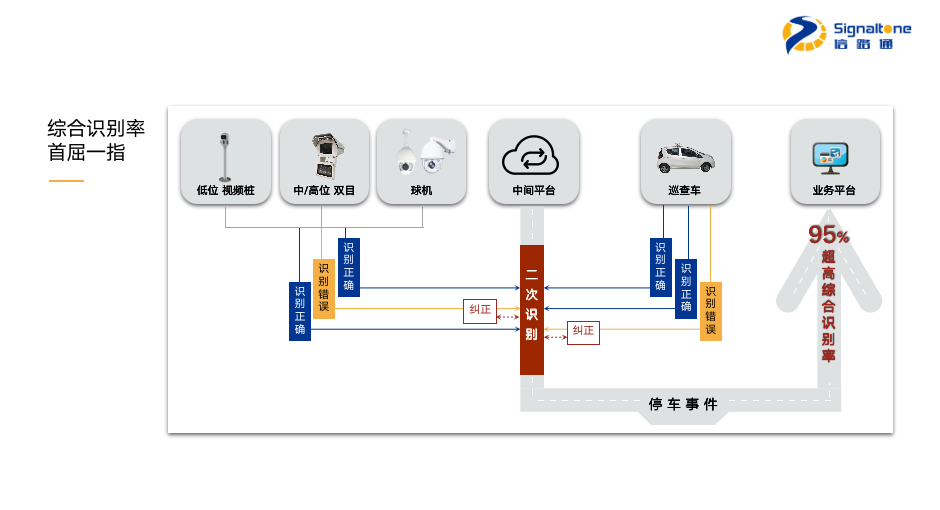 首先,对漏抓入场、出场的车辆进行补入场、补出场的操作;其次,对已抓拍入场对车辆进行在场确认、泊位号矫正,同时,巡查车还可以实时发送GPS坐标给平台。也就是说,从数据前端包括视频桩、双目、球机、枪击、巡查车采集,到中间平台的二次识别,最后输出的性能指标,综合识别率可以达到95%。注意,这里指的是综合识别率,行业内单项指标达到95%的就很少,综合指标能达到这个级别就更少。